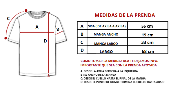 Todas las medidas son tomadas con la prenda apoyada.