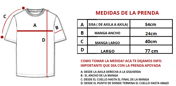 TODAS LAS MEDIDAS SON TOMADAS CON LA PRENDA APOYADA